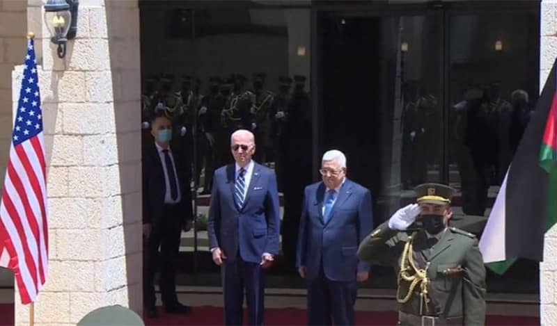 شهد الرئيسان الأمريكي “ جو بايدن” والفلسطيني “ محمود عباس ” عزف الموسيقى الوطنية لكلا البلدين في مراسم استقبال رسمية ، فور وصول الرئيس الأمريكي لمقر الرئاسة الفلسطيني.