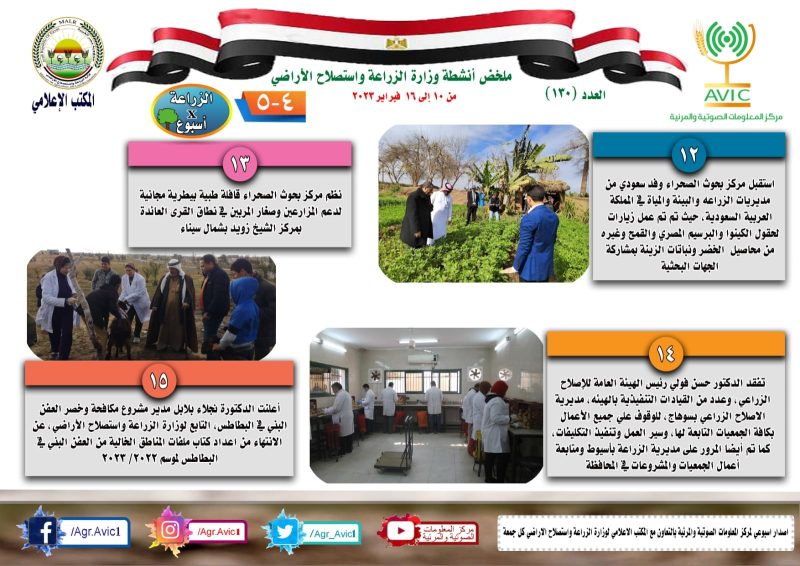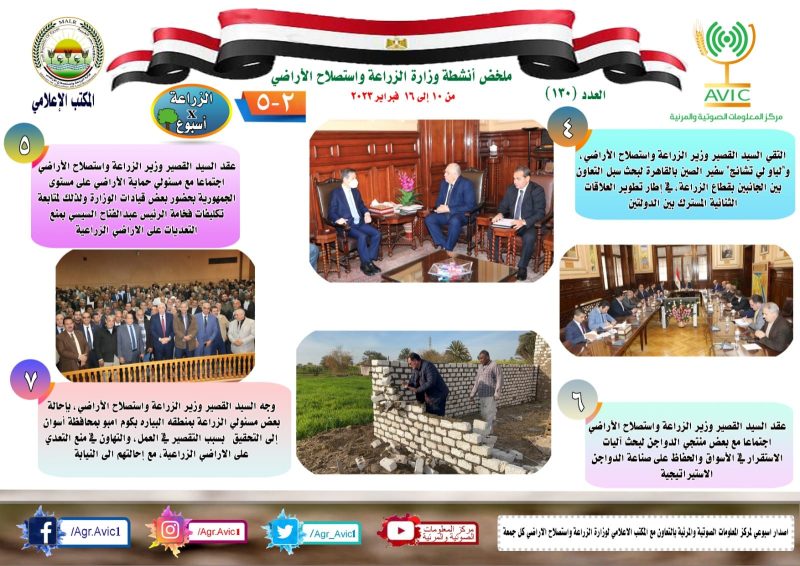 بالانفوجراف| “الزراعة في أسبوع” نشرة الحصاد رقم ١٣٠ لأنشطة الوزارة