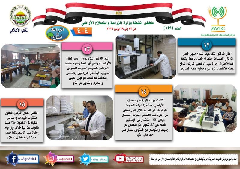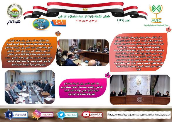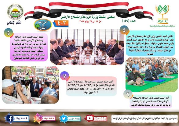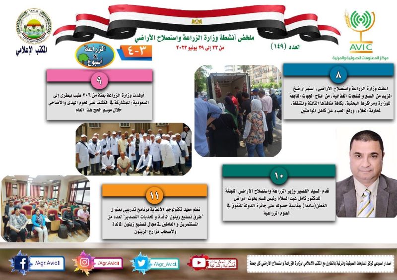 نسخته رقم ١٤٩ ، حول الحصاد الاسبوعي لأهم أنشطة الوزارة، خلال الاسبوع الماضي في الفترة من ٢٣ وحتى ٢٩ يونيو.
