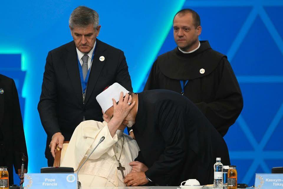 ويذكر شيخ الازهر للبابا فرنسيس حرصَه على توطيد العلاقة مع الأزهر ومع العالم الإسلامي، من خلال زياراته للعديد من الدول الإسلامية والعربية، ومن خلال آرائه التي أظهرت إنصافًا وإنسانية، وبخاصة تجاه العدوان على غزة والتصدي للإسلاموفوبيا المقيتة.