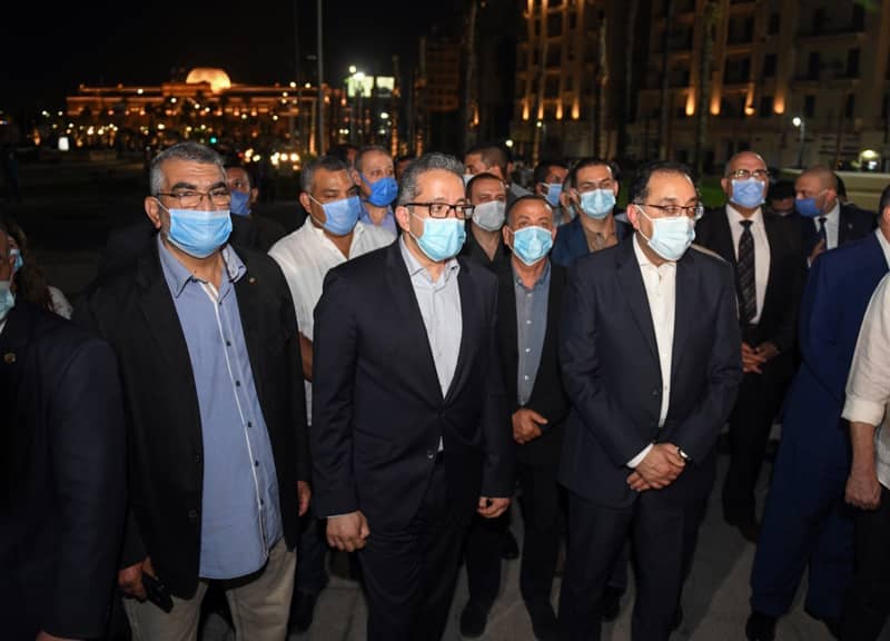 تفقد الدكتور مصطفى مدبولى، رئيس مجلس الوزراء، الأعمال النهائية لمشروع تطوير ميدان التحرير، يرافقه الدكتور خالد العنانى، وزير السياحة والاثار، واللواء محمود شعراوى، وزير التنمية المحلية، وهشام توفيق، وزير قطاع الاعمال العام، والدكتور عاصم الجزار، وزير الاسكان والمرافق والمجتمعات العمرانية، واللواء خالد عبد العال، محافظ القاهرة، والدكتور مصطفي وزيري، الأمين العام للمجلس الأعلى للآثار، والمهندس محسن صلاح، رئيس مجلس إدارة شركة المقاولون العرب.
