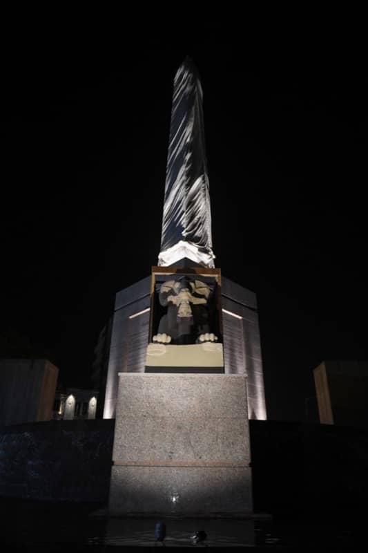 واستمع رئيس الوزراء إلى شرح مفصل حول ما تم من أعمال لتطوير ميدان التحرير، حيث أشار وزير السياحة والآثار، إلى أن مشروع التطوير تضمن تركيب وإعادة ترميم مسلة الملك “رمسيس الثاني”، والتى تم نقلها من منطقة صان الحجر الأثرية بمحافظة الشرقية، حيث كانت مقسمة إلى عدة أجزاء، وبلغ ارتفاعها مكتملا بعد تجميعها حوالي 19 متراً، ووصل وزنها الى حوالي 90 طناً، وهي منحوتة من حجر الجرانيت الوردي، وتتميز بجمال نقوشها التي تصور الملك “رمسيس الثاني”، واقفاً أمام أحد المعبودات، بالإضافة إلى الألقاب المختلفة له.