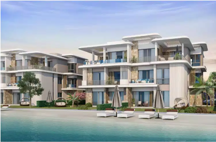 مباشرة على البحر أو اللاجون أو كليهما، ويجمع بين التصميمات المعمارية الحديثة والخدمات