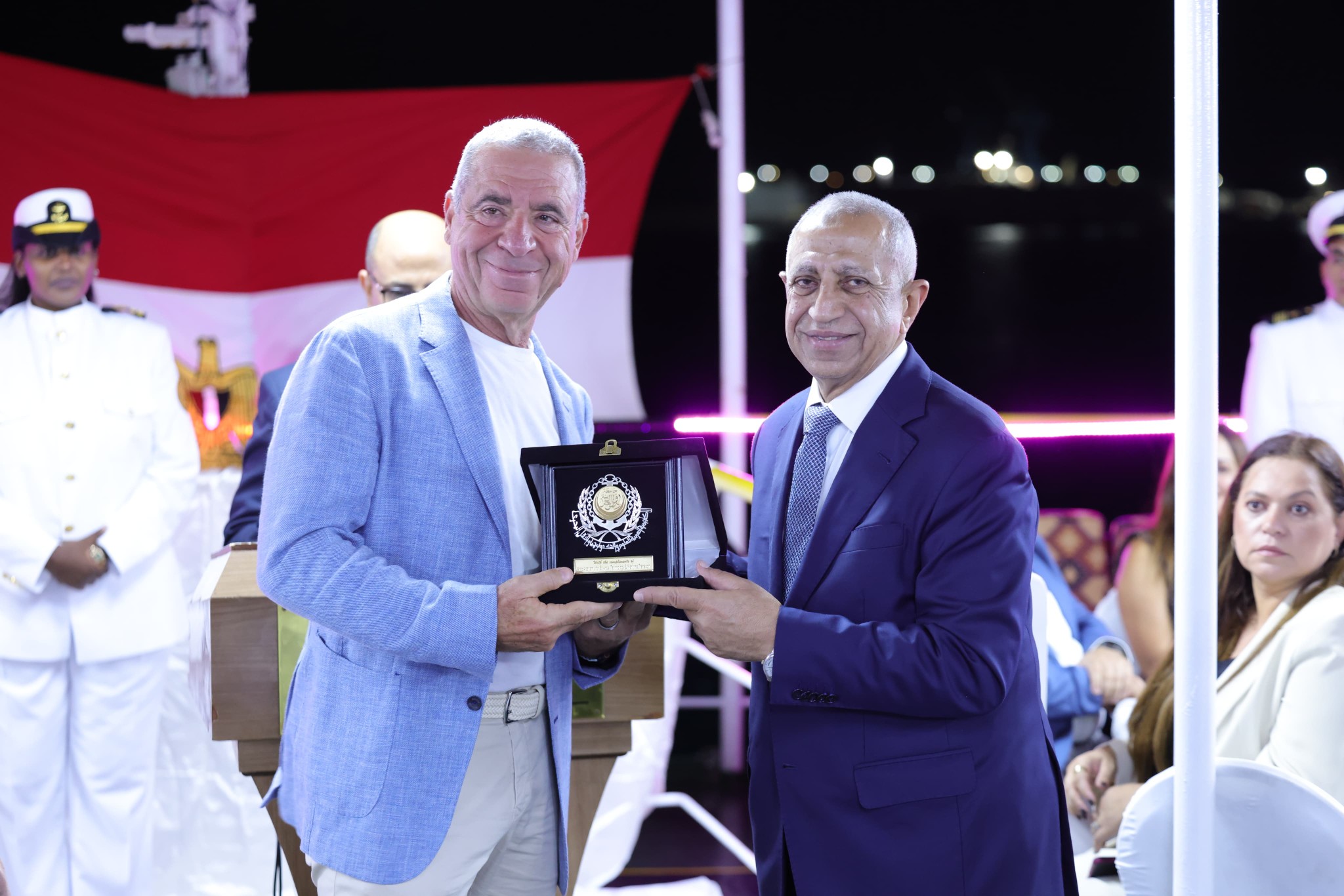 وقد كان في استقبالهم الدكتور إسماعيل عبد الغفار، رئيس الاكاديمية العربية على متن السفينة، حيث عبّر عن ترحيبه بالوفد وتقديره لعمق العلاقات الثنائية ومتعددة الأطراف في مجال النقل والتدريب البحري.