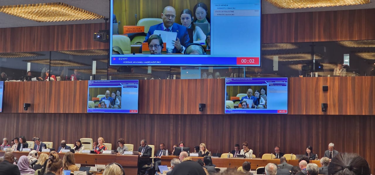 واختتم الوفد المصري بيانه بالتأكيد على تطلعه إلى مساندة جميع أعضاء مجلس الإدارة