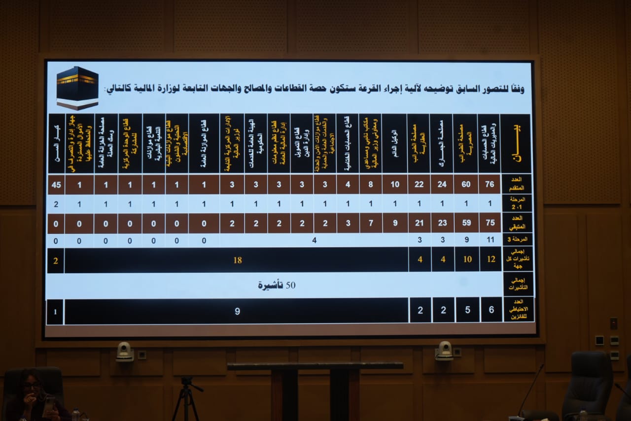 فنية لإدارة الدعم الإداري واللوجستي، لضمان التوزيع العادل لتأشيرات الحج بين المرشحين