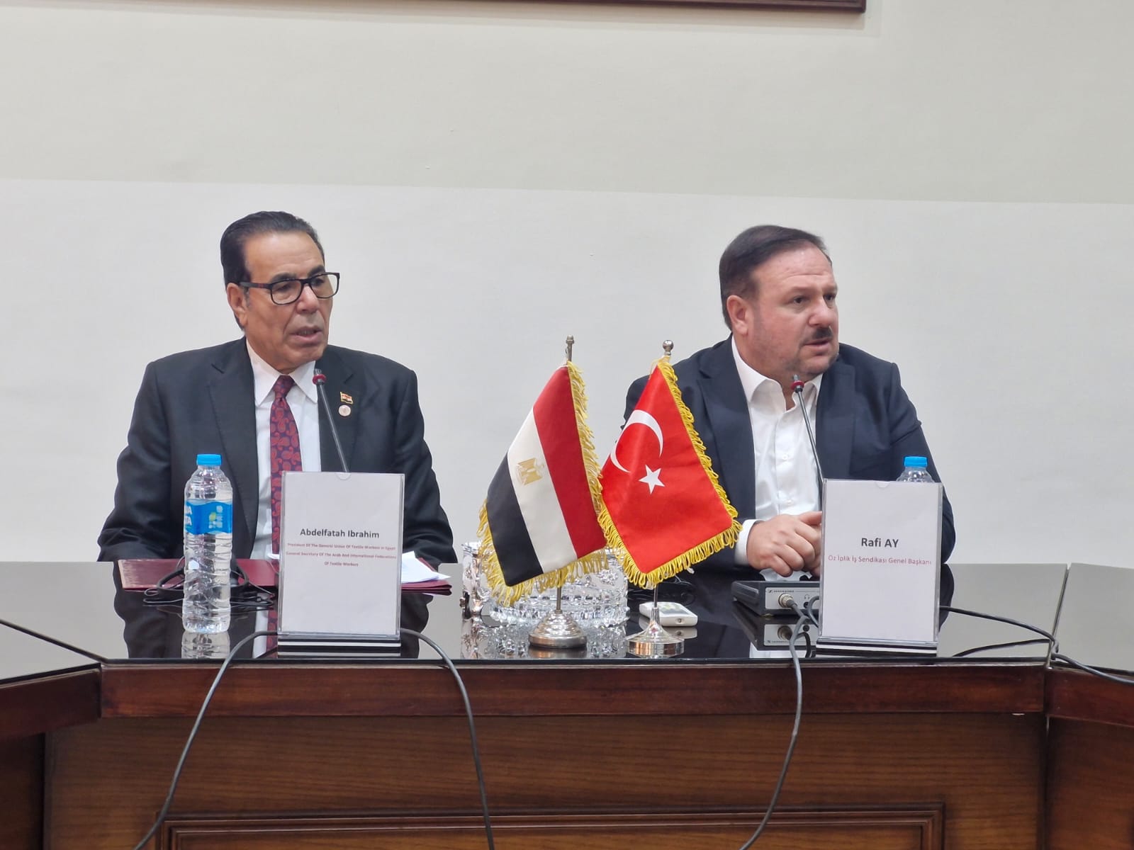 ووقع البيان كل من رافي أي، رئيس النقابة العامة للغزل والنسيج بتركيا، وعبد الفتاح إبراهيم،