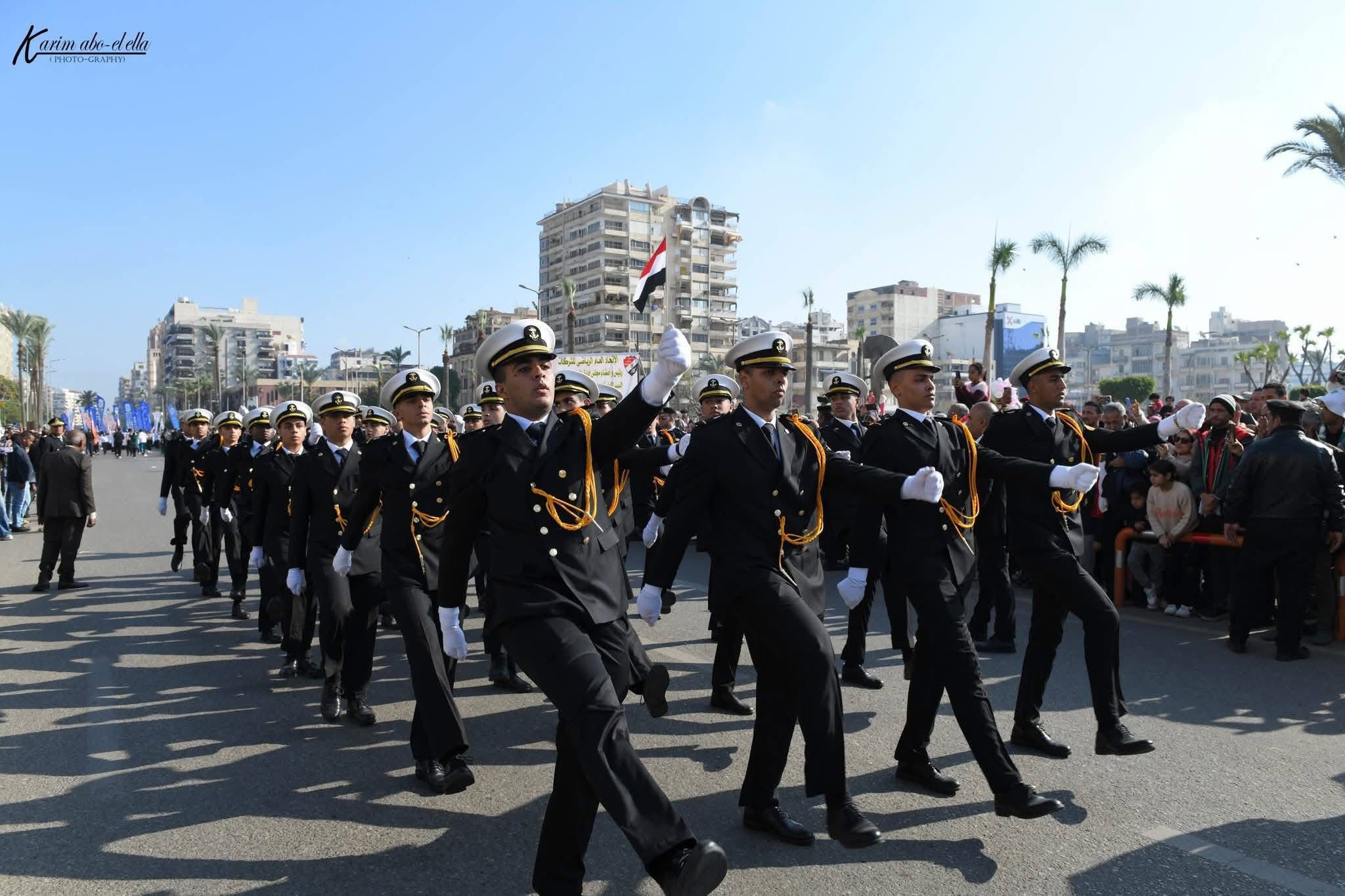 تقدم عرض بورسعيد العسكري والفني حملة الأعلام من طلاب الأكاديمية البحرية، بمشاركة قوات