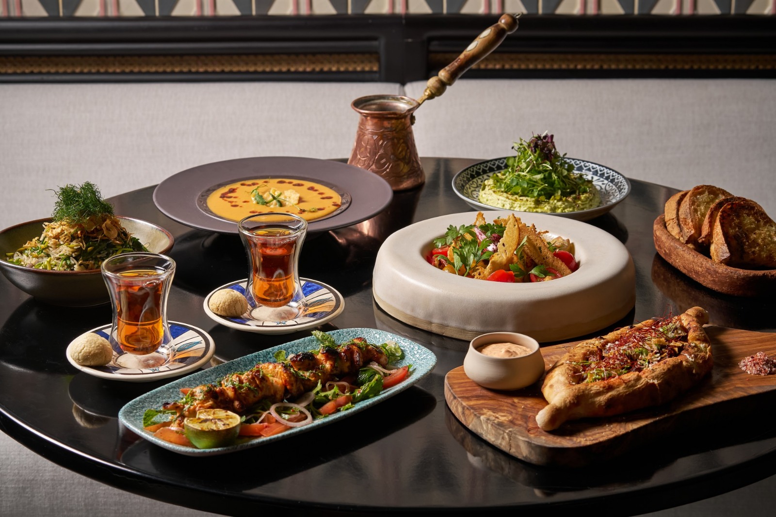 في مطعم “رويا”، يقدّم غداء الأعمال قائمة من ثلاثة أطباق تحتفي بنكهات المطبخ التركي، مع أطباق مميزة مثل فطيرة البيتا المحشوة بنوعين من الجبن مع بيض عضوي مطهو ببطء، وكباب الدجاج المشوي مع اللبن، وأسياخ الحبار الصغير المشوي.