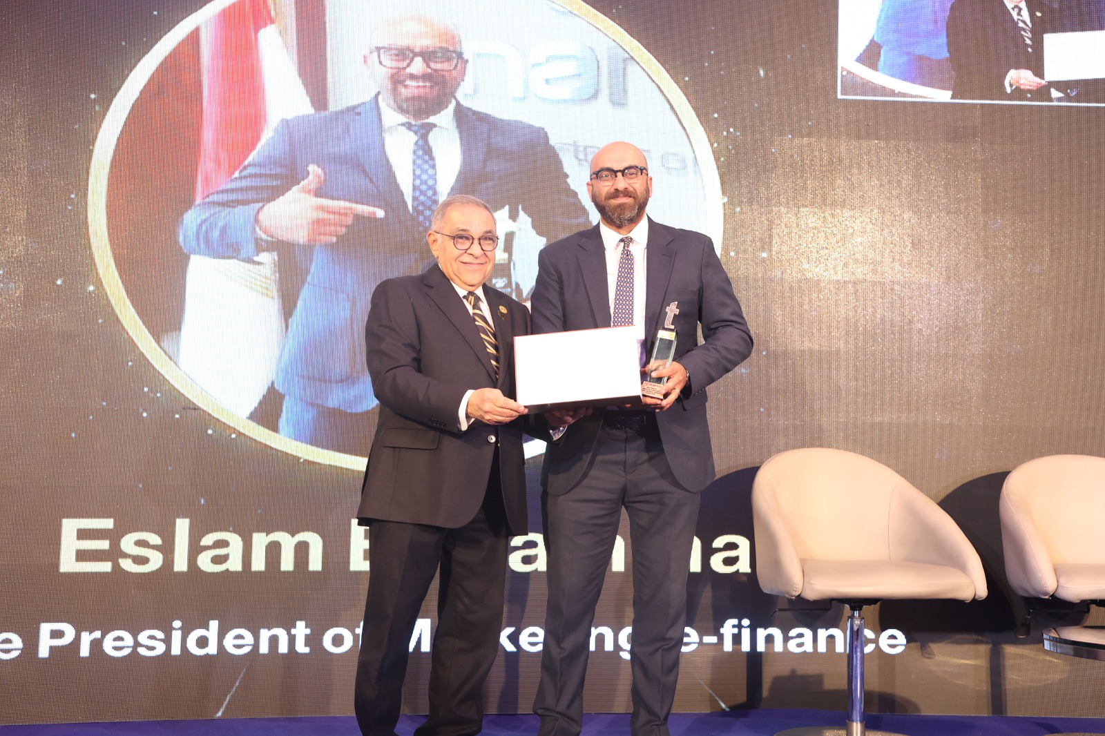 تسلّم الجائزة الأستاذ إسلام الجمل، نائب رئيس قطاع التسويق بمجموعة إي فاينانس، نيابةً عن